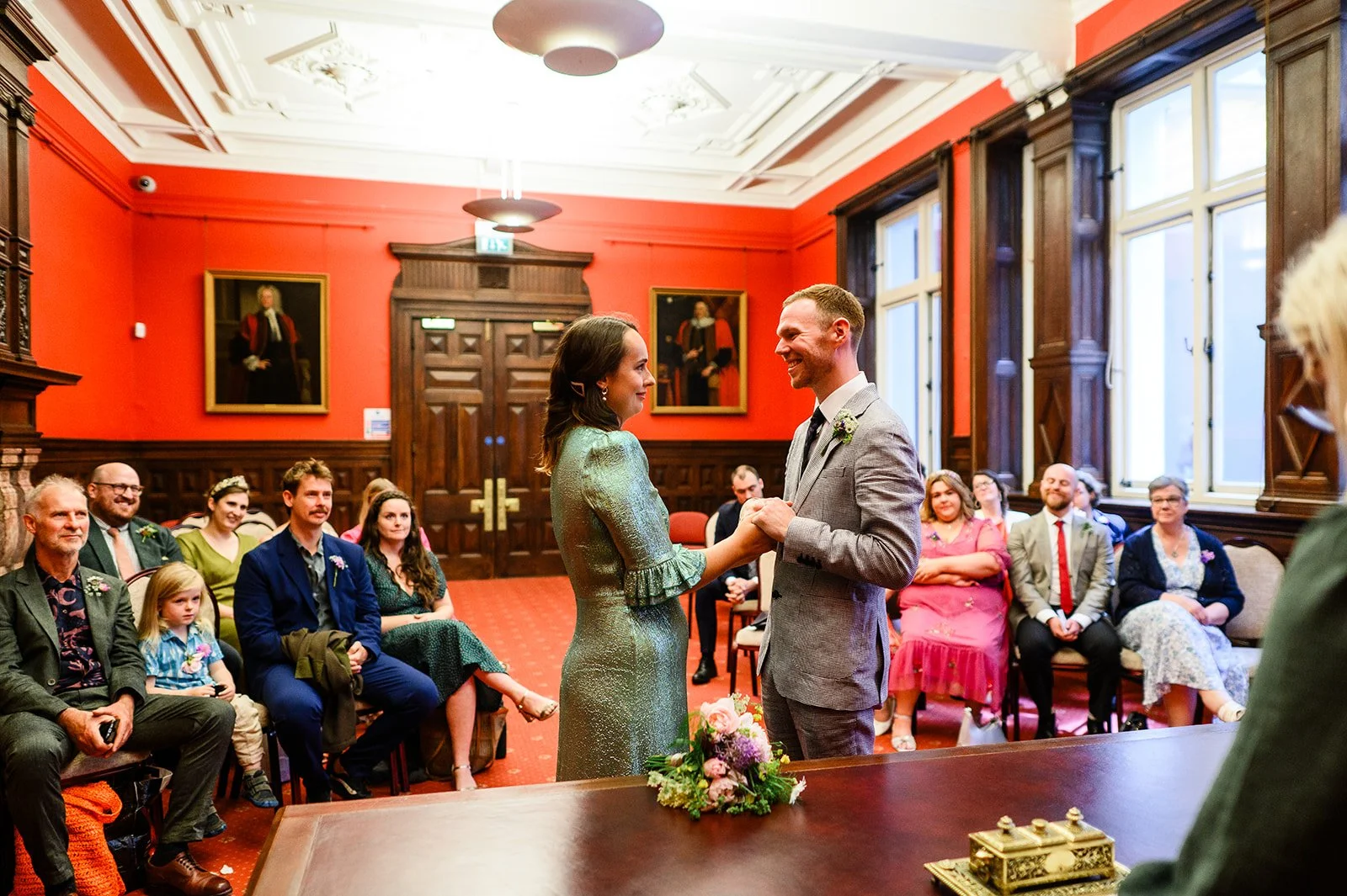 There are 5 different rooms at Bristol Register Office at The Old Council House that you can get married in: The Statutory Room, with space for 4 people plus you two, The Bristol Room with space for 10 plus the couple, the Mayoral Room, with capacity for 50 people plus the couple, the Lantern Room, with capacity for 60 people plus the couple, and the Grand Council Chamber, which has space for 150 guests and the couple. However big or small your ceremony plans are, there’s a room there for you to get married in. As an experienced Bristol wedding photographer, I have photographed ceremonies in many of these rooms.